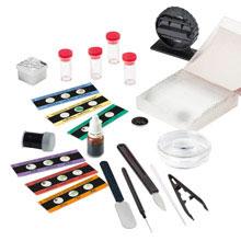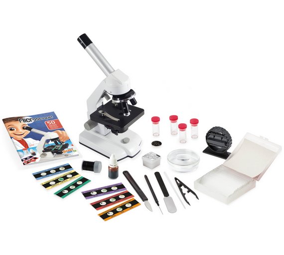 Accessori inclusi:  2 oculari 10x e 25x, 6 vetrini campione, 12 vetrini bianchi, 1 piastra Petri, 1 microaffettatrice, 1 ago, 1 bisturi, 1 paio di pinzette, 1 spatola, 1 agitatore, 4 bottigliette, 12 coperchi tagliandi e 12 etichette, 1 lente d'ingrandimento, colorazione rossa, 1 foglio istruzioni illustrato.