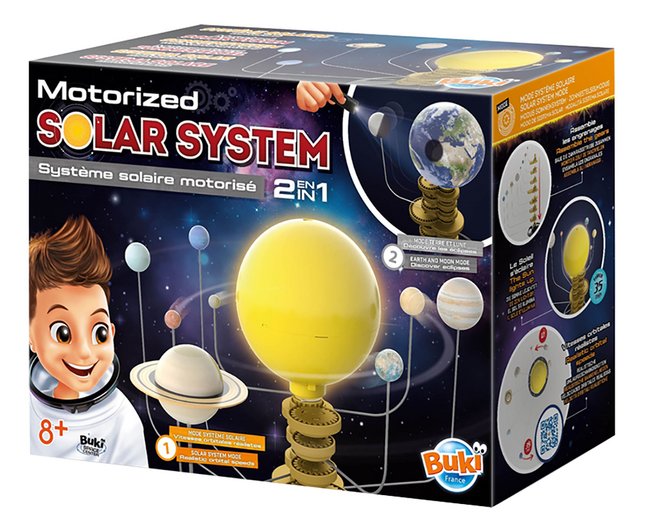 Scopri il sistema solare e i suoi 8 pianeti, che ruotano rispettando i cicli di rivoluzione su una durata di 35 minuti. Il sole al centro s’illumina come una lampada. Trasforma il tuo modello posizionando la Terra e la Luna e riproduci le eclissi con la lampada inclusa.