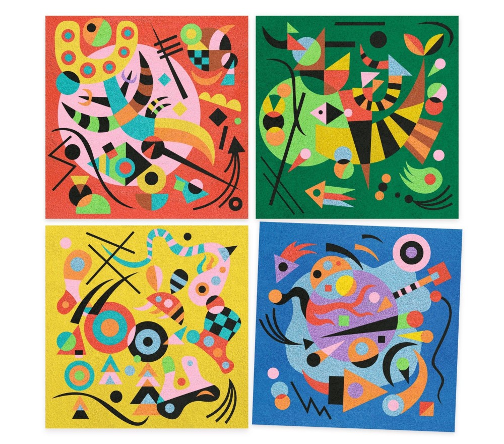 Un set creativo adatto a tutte le età (anche ai grandi!) per creare 4 magnifici quadretti ispirati all'arte astratta di Kandisky.
