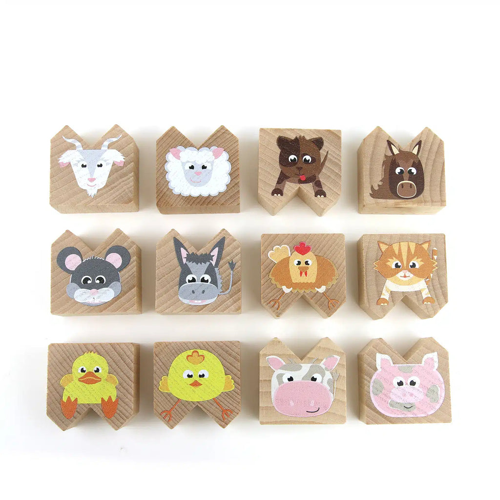 Disponi gli animali a testa in giù sul piano di gioco e gioca a memory accoppiando gli animali in base al colore.