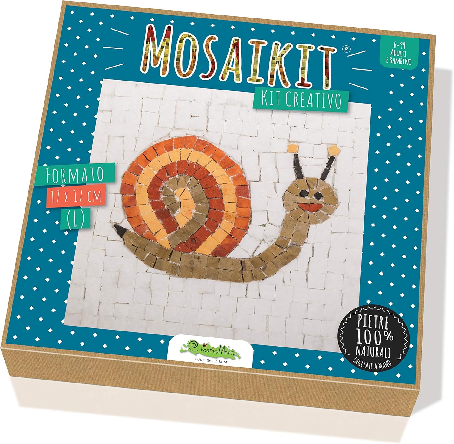Ogni scatola contiene la base in legno, le tessere in pietra naturale, la colla e una ciotolina in ceramica.