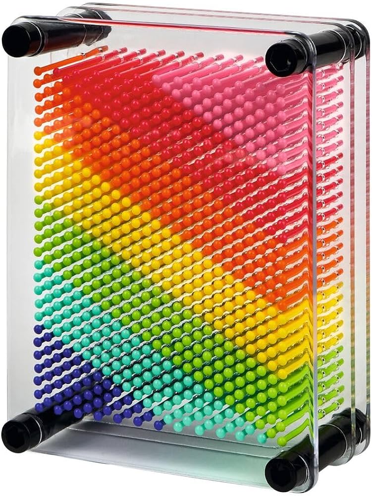 Gioco classico retrò ✓ Con i chiodini Art i bambini danno vita alla loro immaginazione. Il giocattolo senza tempo per bambini apre un mondo di magiche opere d'arte 3D con design arcobaleno Stimola la creatività ✓ Che si tratti della propria impronta di mano, del viso, del giocattolo preferito o di uno dei due stencil: i piccoli artisti possono creare sculture 3D impressionanti e sviluppare le loro capacità creative Uso adatto ai bambini ✓ Basta premere delicatamente l'oggetto desiderato sul retro del plexiglas e, come per magia, si crea un'affascinante impronta 3D. I chiodi in plastica garantiscono un gioco sicuro senza rischio di lesioni Decorazione per la cameretta dei bambini ✓ Il gioco colorato con il magico design arcobaleno è un vero classico decorativo e trasforma la cameretta dei bambini in una galleria d'arte.